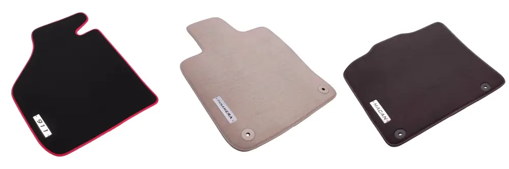 If you’re tired of the monotonous look of ordinary floor mats, velour Porsche floor mats are just the accessory you’re looking for. You can customize the color of the mat’s edges and stitching to match your car’s color details, and decorate them with stainless steel logos such as Porsche, 911, and Boxster. Below you can see velour floor mats compatible with Porsche models.