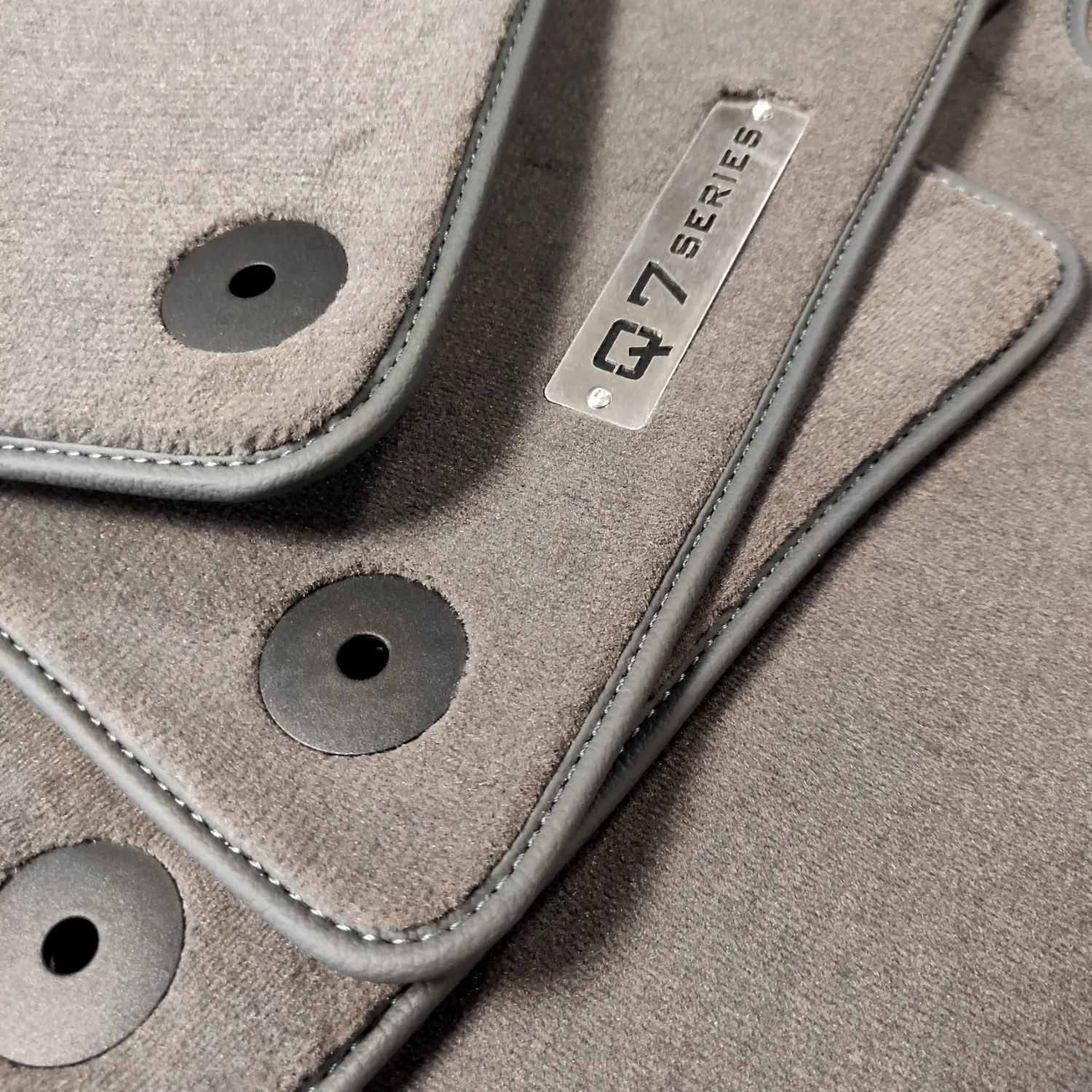 Customizable design details distinguish the velour Audi Q7 floor mats from all alternatives. The fact that you can choose the leather edge, sewing thread and carpet color according to the appearance of your vehicle allows you to have a product that visually adapts to your vehicle. You can see all options and make your own design by browsing our catalog.