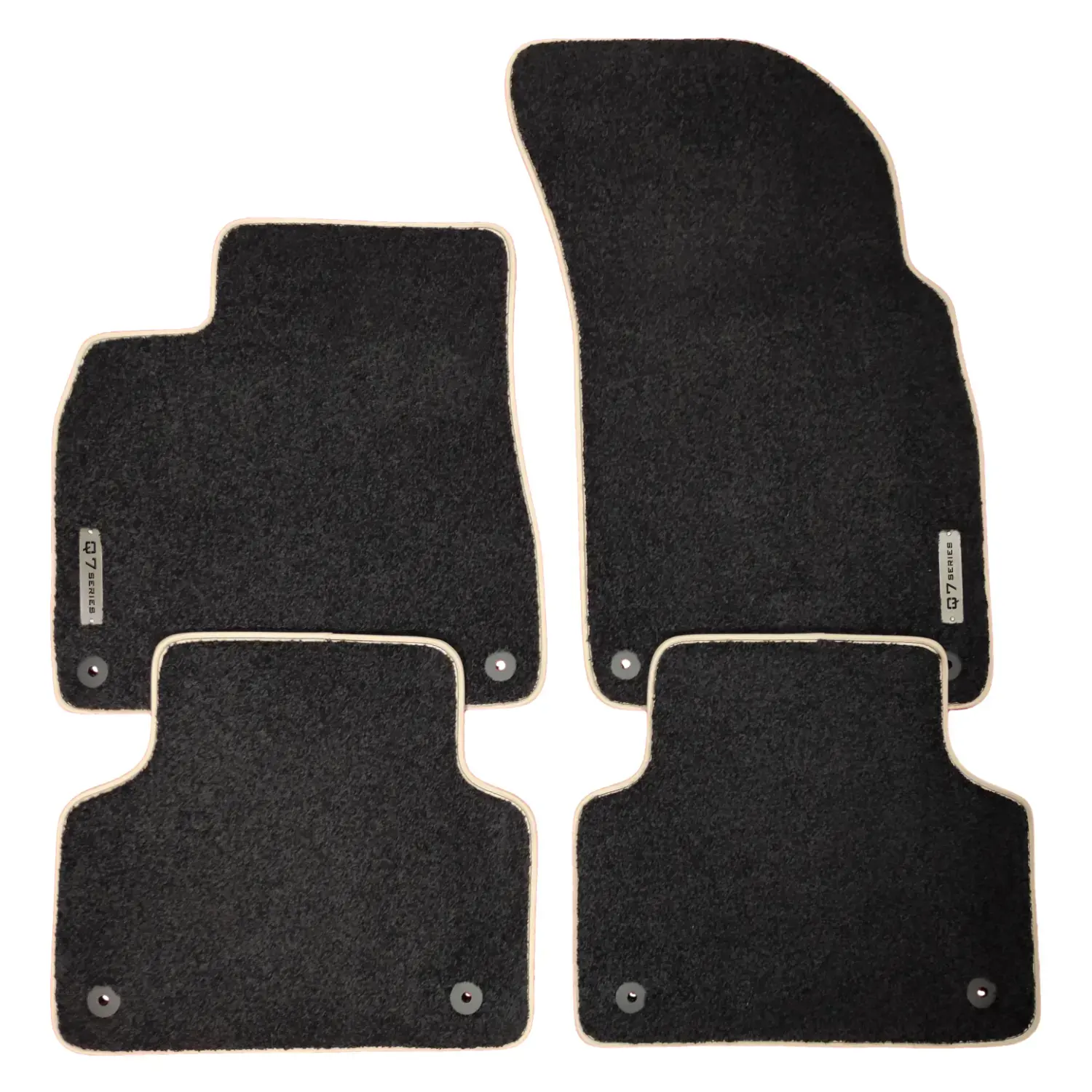 You can customize velour carpet Audi Q7 floor mats fully compatible with the Audi Q7 series by changing the edge, stitching and carpet color and enjoy using a product that is fully compatible with your vehicle. Thanks to Audi compatible clips, the velour carpet floor mat set does not slip under your feet and provides a pleasant ride. You can choose the most suitable color for your vehicle among colors such as beige, anthracite, gray, black. You can use our online catalog to see carpet types and other customization options and make your choices.