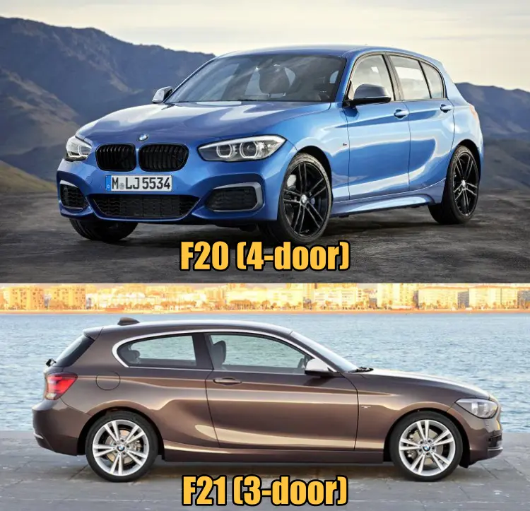 A: The F20 and F21 codes are body codes for the BMW 1 Series produced between 2011 and 2019. F20 refers to the 4-door model, while F21 refers to the 3-door model. The floor mat templates are the same for both F20 and F21 models.