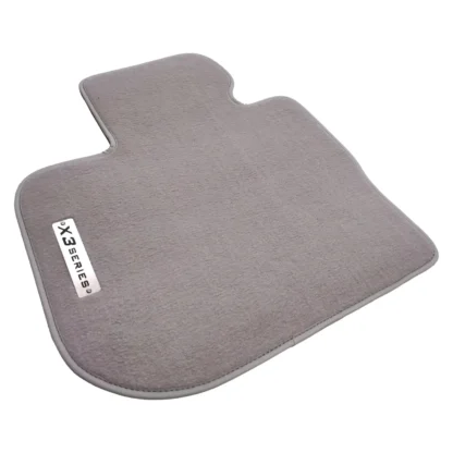 2018-2024 velour BMW X3 G01 floor mats consist of 4 pieces and are made from odorless velour automotive carpets. The most distinctive feature of velour mats is their soft velour surface structure. This surface structure makes velour mats easy to clean and provides a comfortable walking surface. When ordering, you can choose the edge stitching and carpet color of the mats and decorate the velour mats with stainless steel X3 logos. You can browse our catalog now to see all the options.