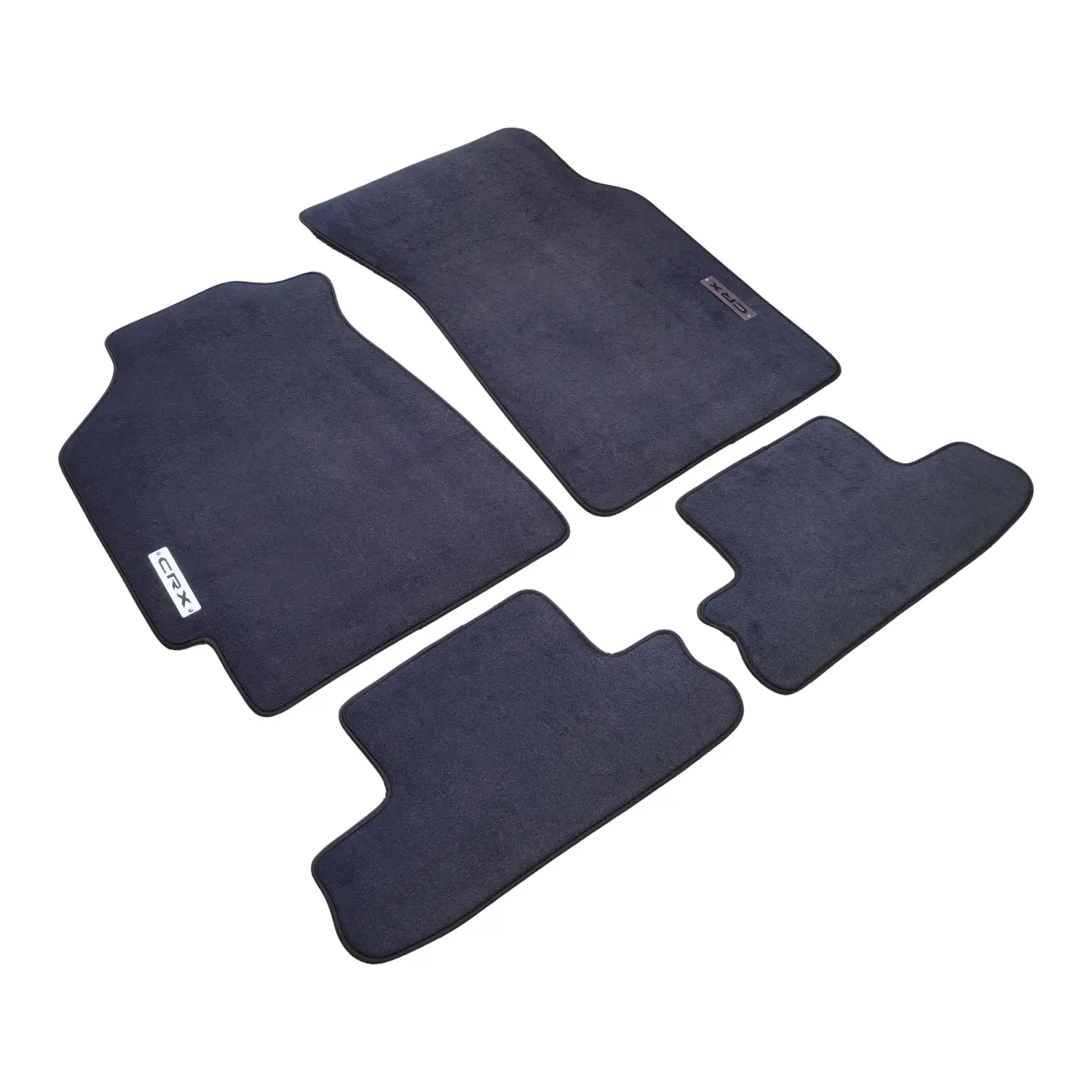 The velour mat set is designed and manufactured specifically for the Honda CRX series. You can find images of the mats in use inside the vehicle in the photo gallery. The automotive mats used in manufacturing are odorless and have a non-slip surface for the car floor. These certified automotive mats contain no waste materials. You can view all mat options on our catalog page.