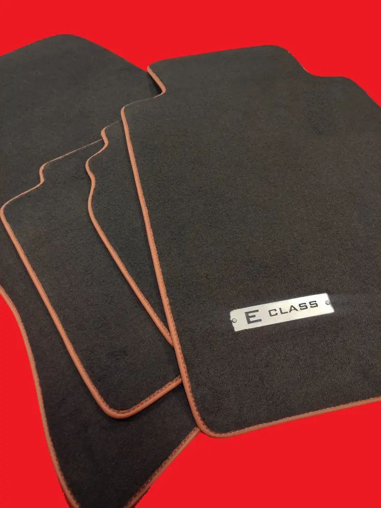 The velour Mercedes W124 floor mats are made from velour automotive carpets and is produced in the same dimensions as the original Mercedes W124 floor mats, consisting of 4 pieces. You can customize the velour carpet set, which is produced specifically for the individual and the vehicle, by selecting the edge, stitching, and carpet color to match your vehicle. You can even customize it using stainless steel Mercedes or E-Class logos. To view all options, browse our catalog now and place your order online through our website.