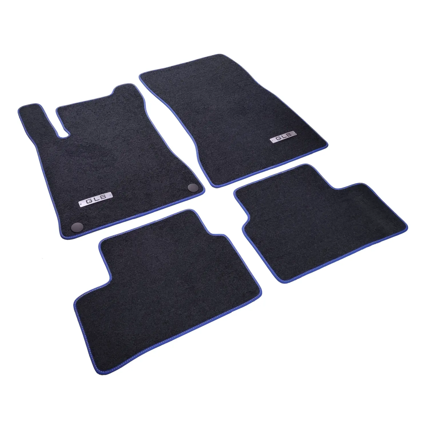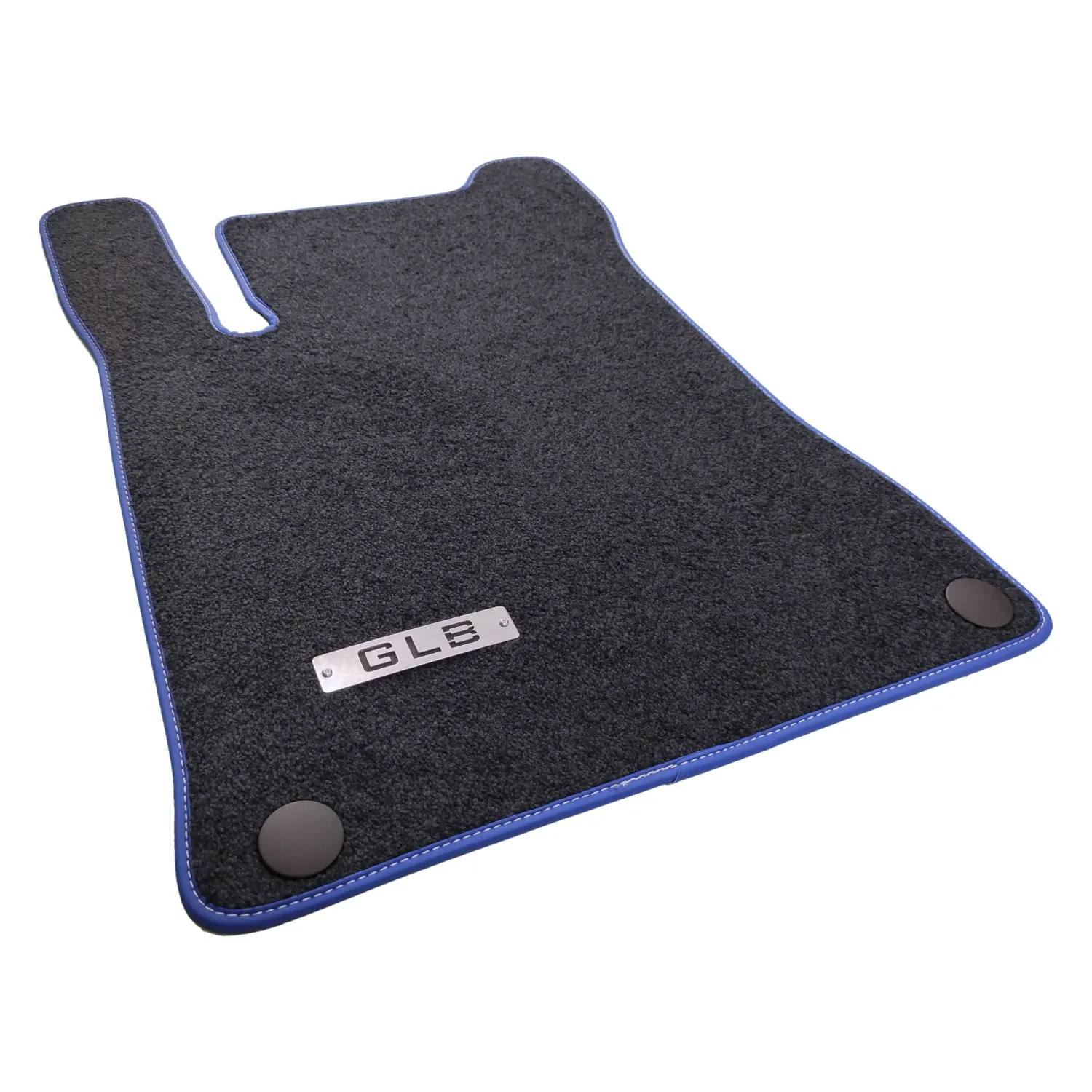Velour Mercedes GLB floor mat set consists of 4 pieces and has floor mat fastening clips, just like the original floor mat set. This ensures that the floor mat set remains fixed on the floor carpet. Velour floor mats are custom-made products. You can customize the mat set by choosing the edge stitching and carpet color, and decorate it with stainless steel GLB metal logos. Don’t forget to browse our catalog to see all customization options!