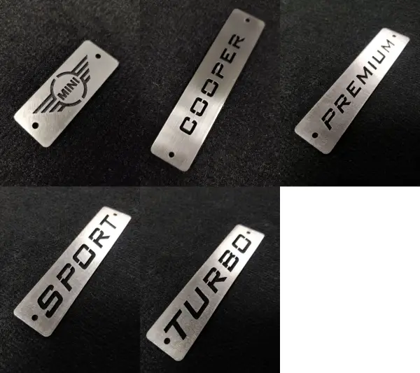 The Cooper stainless steel metal logos are another premium detail that sets this velour doormat set apart from ordinary floor mats. The metal logos, which are attached to the front mats, are made of stainless steel and therefore always shine, no matter the conditions. The metal logos measure 11×2.5 cm. You can view other logo options in the image below and make your selection.