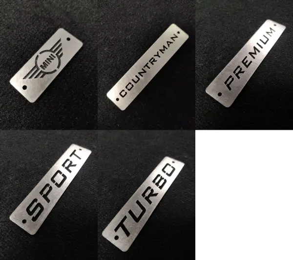 Measuring 11×2.5 cm (the Mini logo measures 6.5×2.5 cm), Countryman metal logos can be attached to the front floor mat set in any desired position. These highly corrosion-resistant chrome logos enhance the appearance of the velour floor mat set. You can see metal logo options such as Countryman and Mini in the collage below.