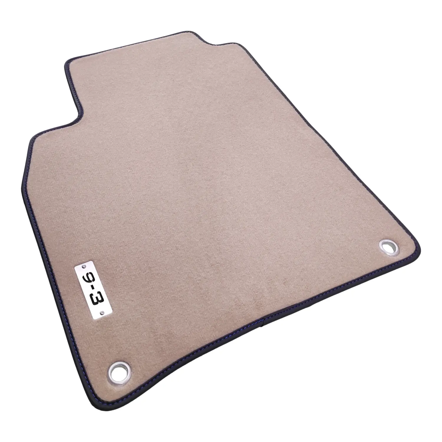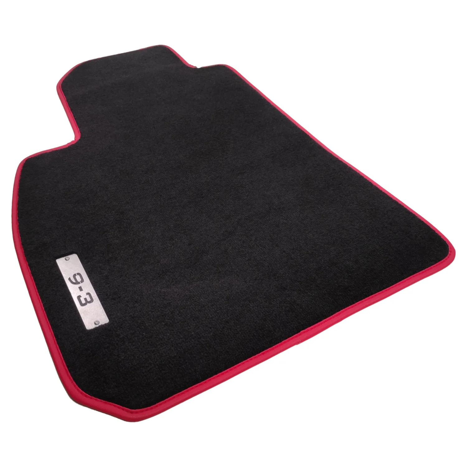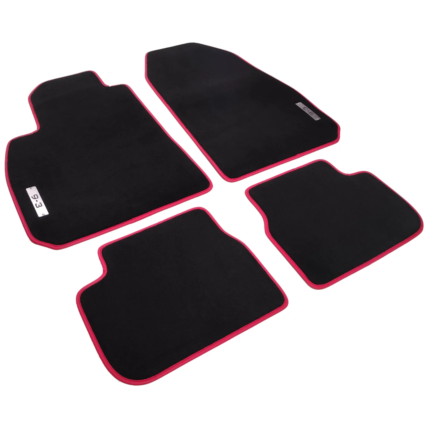 The velour carpet mat set we produced for Saab 9-3 series is fully compatible with convertible model. The 4-piece set is available with customizable edge and stitch color. While creating your order, you can customize your mats according to the details of your car, moreover, you can decorate the front mat set with stainless steel 9-3 metal logos. You can place your mat set order now by browsing our catalog.