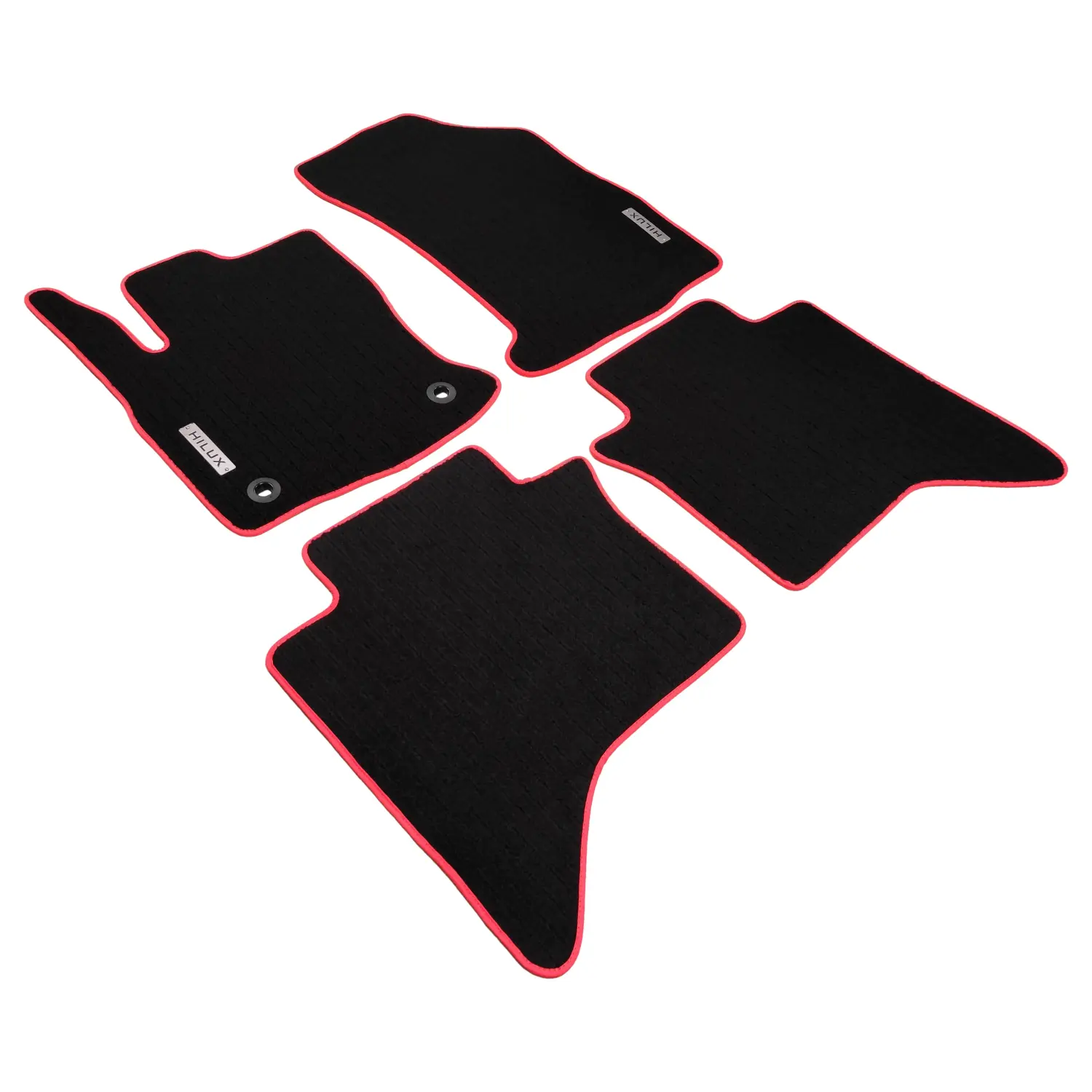 Toyota Hilux velour floor mats are fully compatible with your vehicle. Thanks to the mat clips, the velour mat set will not slip while driving. Hilux floor mat set consists of 4 pieces and is produced from odorless automotive carpets.